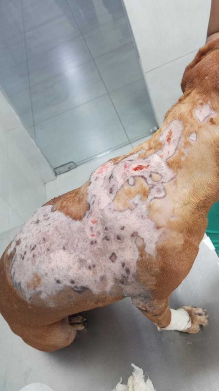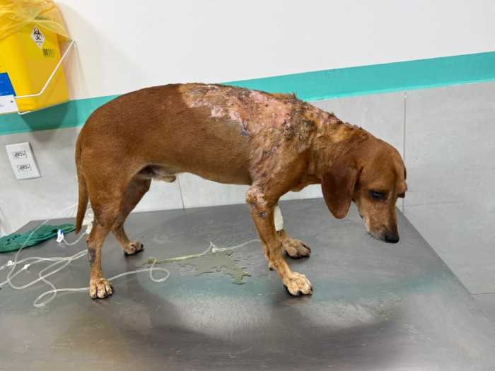 O laudo pericial feito pela Polícia Técnico-Científica confirmou que o animal sofreu queimaduras de 1º, 2º e 3º graus em aproximadamente 40% da superfície corporal. Devido à extensão dos ferimentos, o cão apresentou quadro de infecção secundária e complicações sistêmicas graves, chegando a necessitar de suporte de oxigênio durante a internação, ainda correndo risco de morte.