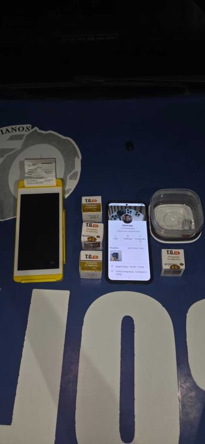 Divulgação/Policia Militar Um casal, de 32 e 37 anos, foi preso no início da noite de quarta-feira (17) com quatro caixas tirzepatida, princípio ativo do Mounjaro. A prisão, executada por equipes do 8º BPM (Batalhão de Polícia Militar), aconteceu por volta das 19h30 nas proximidades de um shopping localizado na região central de Aparecida de Goiânia. Abordados em uma motocicleta, o homem, de 32, e a mulher, de 37 anos, confessaram que realizariam a entrega dos medicamentos. A negociação, segundo eles, foi feita através de um aplicativo de mensagens.