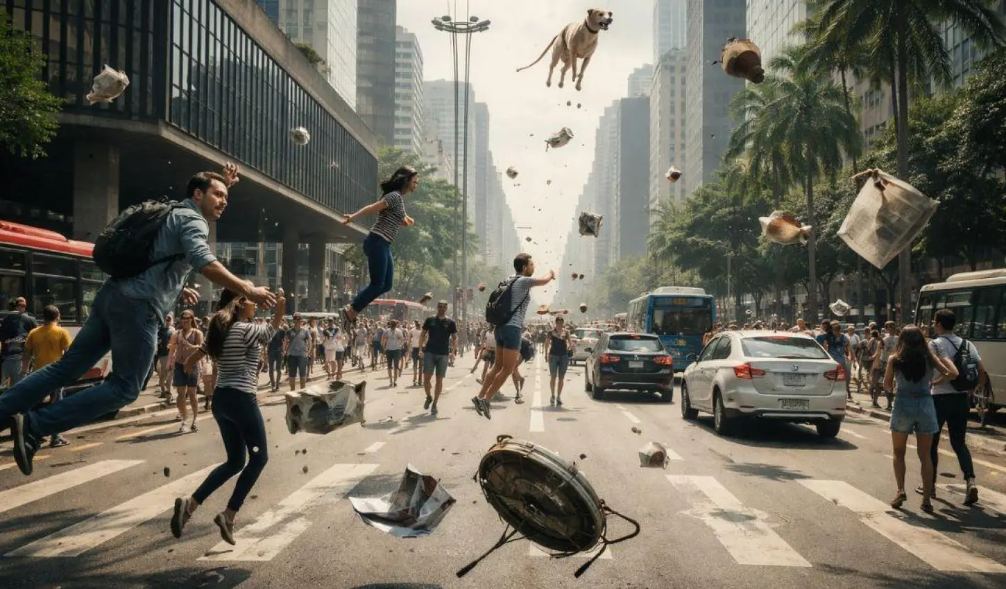 Imagine acordar e, de repente, tudo começar a flutuar… Pessoas, carros, animais e objetos subindo alguns metros no ar. Depois, segundos mais tarde, tudo despencando ao mesmo tempo. Parece cena de filme de ficção científica. Mas foi exatamente esse cenário que uma teoria viral começou a espalhar nas redes sociais.