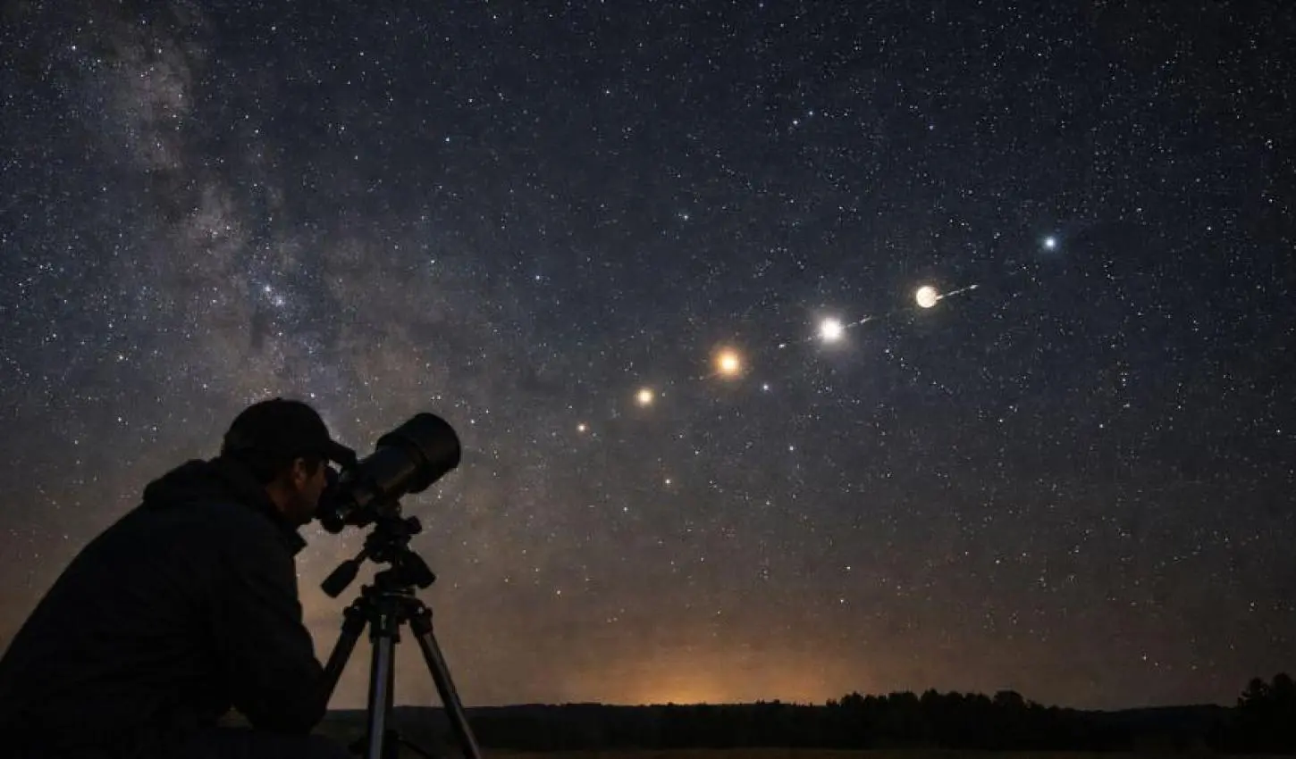 Quando vários planetas aparecem juntos, o céu deixa de ser apenas um fundo escuro e se transforma em um mapa vivo do Sistema Solar.